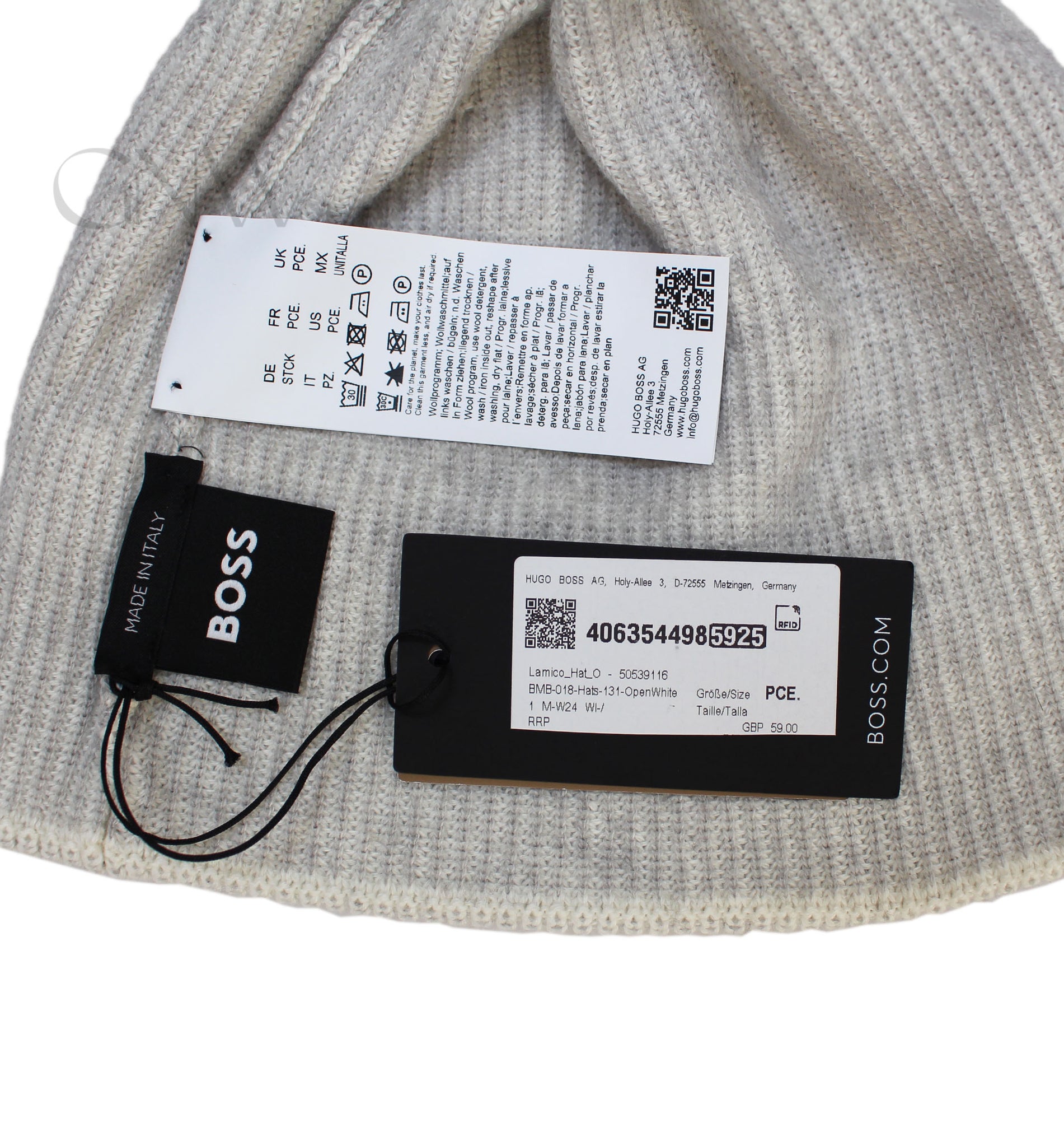 Boss Men's Knitted Beanie/ Skull Lamico Hat Made In Italy Open White
